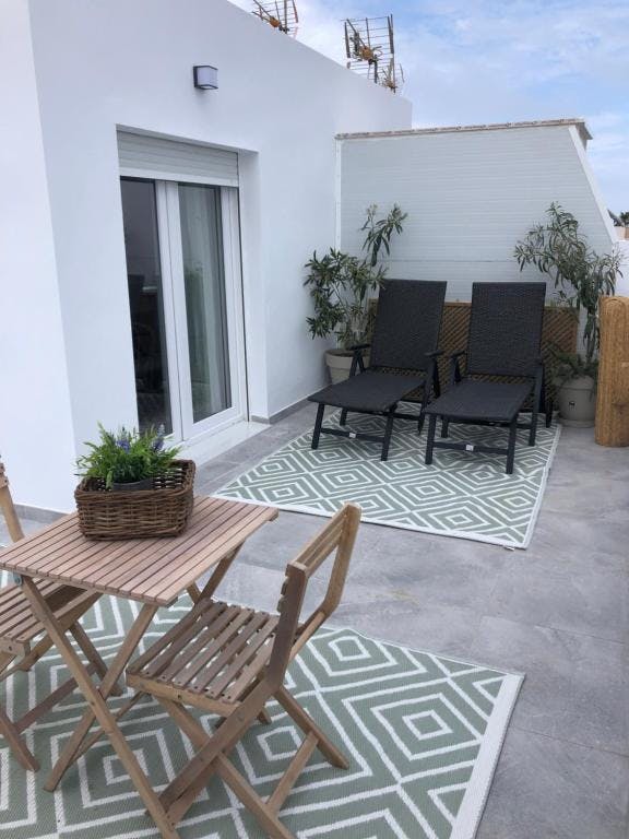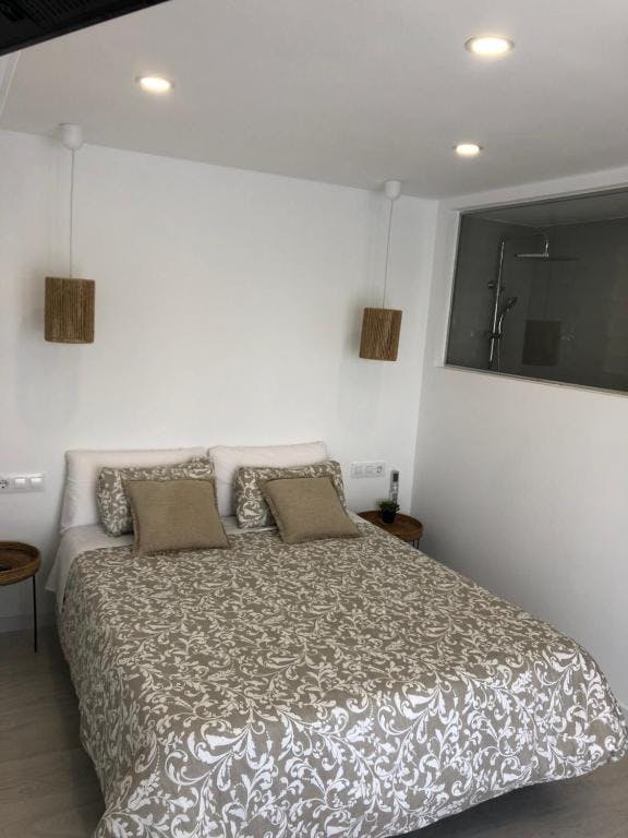 *Penthouse with Sea Views* Enjoy a unique stay in our exclusive penthouse, with stunning sea views. Relax in the open shower from which you can contemplate the sea, or on the private terrace with a table and hammocks, ideal for sunbathing. The small but fully equipped kitchen will make you feel at home. In addition, the high-quality viscolatex mattress ensures maximum comfort for a restful sleep. An unparalleled experience, where luxury and nature meet.